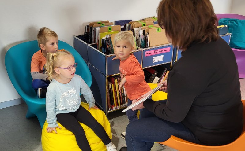 Nous avons pu faire 4 petits groupes: les dames de la bibliothèque, Sandra et Valérie. Nous avons pu écouter 4 histoires, nous avons bien apprécié ces lectures. (toutes en lien avec les activités de la période)