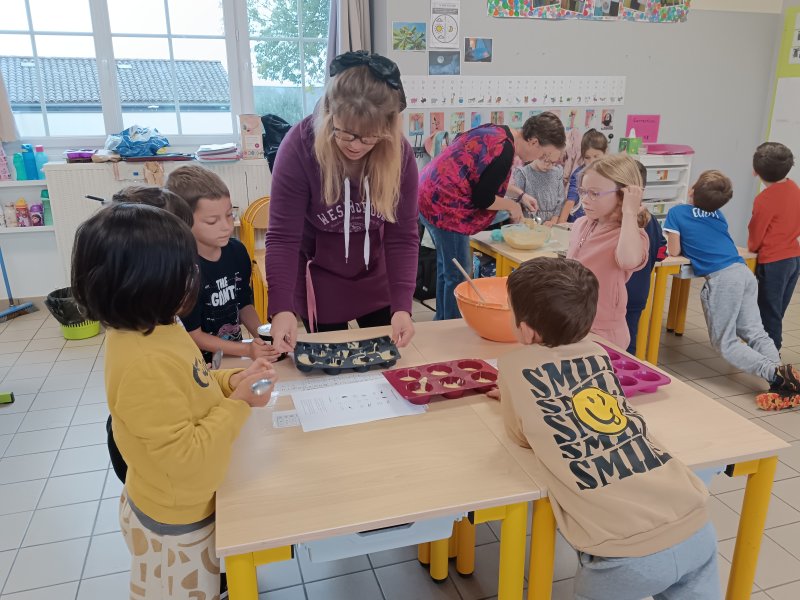 La cuisine des gourmandsPar Pauline HUMBERT / 5 novembre 2024 En cette fin de première période et à l’occasion de la semaine du goût, les GS-CP ont confectionné des muffins à la myrtille pour tous les enfants de l’école. Merci aux 2 mamans qui sont venues nous aider ! IMG_20241017_094525 Image 3 de 10