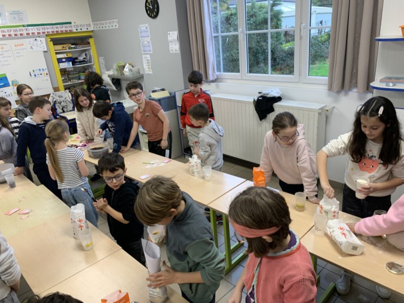 La petite usine composée des 43 élèves de CE et CM s’est donc investie pour préparer de magnifiques bocaux qui permettront aux acheteurs de faire de délicieux cookies.