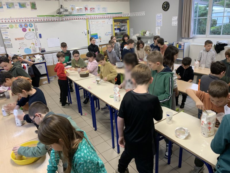La petite usine composée des 43 élèves de CE et CM s’est donc investie pour préparer de magnifiques bocaux qui permettront aux acheteurs de faire de délicieux cookies.