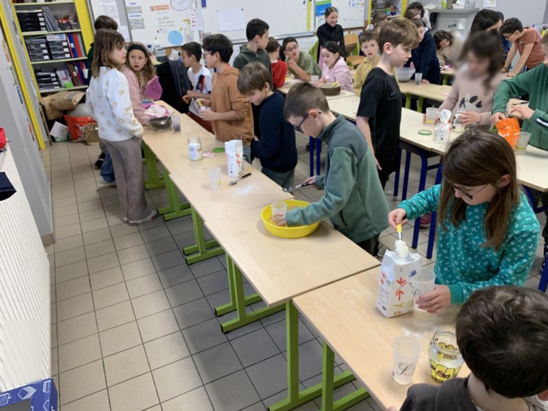 La petite usine composée des 43 élèves de CE et CM s’est donc investie pour préparer de magnifiques bocaux qui permettront aux acheteurs de faire de délicieux cookies.