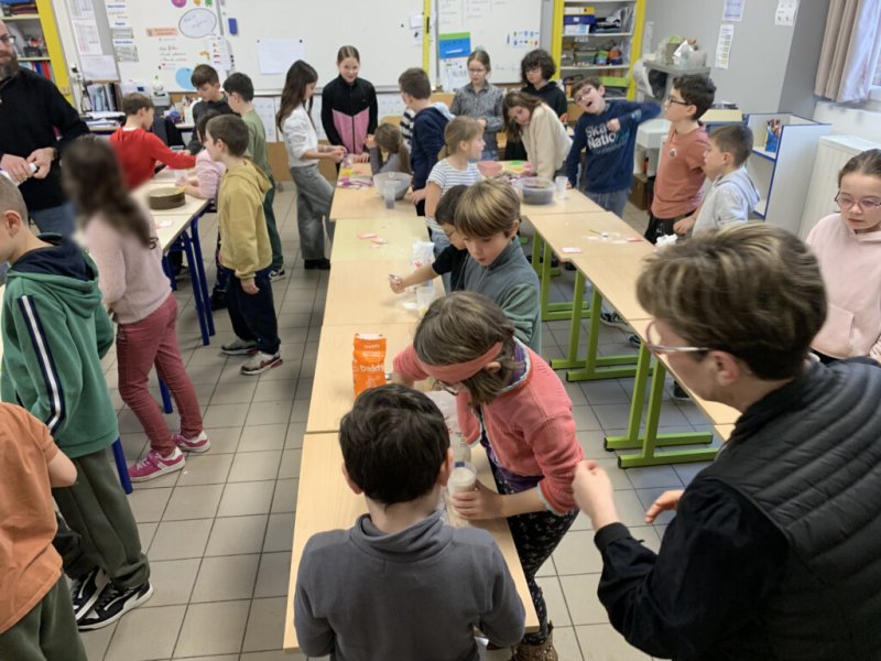 La petite usine composée des 43 élèves de CE et CM s’est donc investie pour préparer de magnifiques bocaux qui permettront aux acheteurs de faire de délicieux cookies.