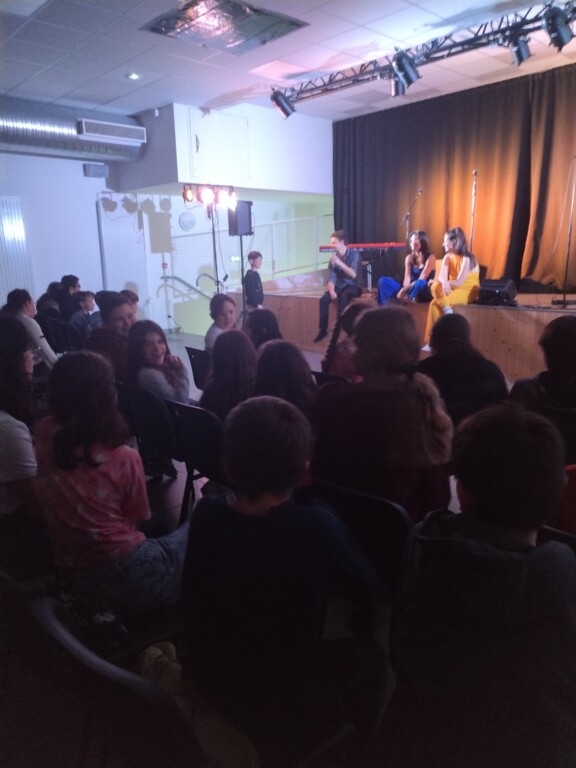 Ils ont pu chanter et danser pour ceux qui le souhaitaient. Cela s’est suivi d’un moment de questions avec les chanteuses et le musicien du groupe.